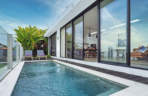 Villa is 2-bedroom stylish and contemporary villa 800m2 with fabulous living space, private swimming pool and excellent staff team. It's in fashionable Canggu with most famous restaurants and shops in Bali. Relax at the pool, sipping cocktail on the sunbed, listening to the birds singing and enjoy the view of the rice fields. Villa is perfect for a family or a group of friends looking for a sun-soaked holiday. Batu Balong beach: 4.0 km (10 min by bike), cafes – 50 m, airport -17 km
