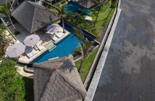 A warm Balinese breeze will greet you at Absolute 3 Bedroom Beach Front Villa, bringing the crisp sea air over arching palms to this three bedroom en-suite villa. This double pavilion 3 bedroom residence, complete with media room or optional fourth bedroom, is linked together by a completely private stone walkway through a lush water garden and koi pond. The absolute ocean fronted villa allows guests to enjoy stunning, uninterrupted, vistas of the Indian Ocean by their private infinity pool, while being surrounded by lush gardens and fish ponds. This villa is fitted with a fully equipped kitchen including espresso machines, on-demand movies, villa dedicated staff (including personal chef and butlers), complimentary wi-fi, as well as having a grand ocean experience bale, and use of Spa and fitness center. This villa also has the added option of converting the media to a separate bedroom using a fold-out-couch should the guest require.