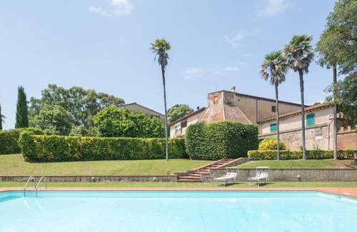 historical villa in the countryside, large pool, garden furniture, possibility to reserve a chef for dinners. 8 rooms, 15 beds, no breakfast. Many restaurants nearby with wonderful tuscan cuisine. Airport at 20 km