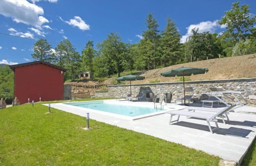 A few kilometers away from the sea of the Cinque Terre and the beaches and attractions of the Versilia coast lies this beautiful and elegant countryhouse of the nineteenth century, recently renovated with materials of the highest quality. Country house "Agr. Castello della Mugazzena", renovated, surrounded by trees. In the hamlet Tresana 8 km from the centre of Aulla, 10 km from the centre of Villafranca in Lunigiana, 15 km from the centre of Castello di Malgrate, in a secluded, quiet position, in the countryside. For shared use: property 140 ha, swimming pool (8 x 4 m, depth 120 cm, seasonal availability: 15.May. - 30.Sep.). Outdoor shower, garden furniture. In the house: internet access, central heating system, heating to be paid on the spot (15.Apr. - 31.Oct.). Cook on request. Motor access (1 km via unmade road). Parking at the house. Grocery 5 km, supermarket 8 km, restaurant 5 km, bus stop 800 m, railway station 8 km, thermal baths "Equi Terme" 30 km. Tennis 5 km, riding stable 5 km. Nearby attractions: Fivizzano 25 km, Pontremoli 30 km, Sarzana 27 km, La Spezia 29 km, Lerici 32 km, Riomaggiore (5 Terre) 44 km. Well-known lakes can easily be reached: Cerreto Laghi 46 km, Lago di Gramolazzo 43 km. Please note: car recommended. Cooking courses bookable on request. Local sale of farm products. Part of the house is closed and unoccupied. Guests can visit the company's wine cellar, purchase local wine and oil and enjoy the nature trails where they can meet the typical fauna and flora of the place.