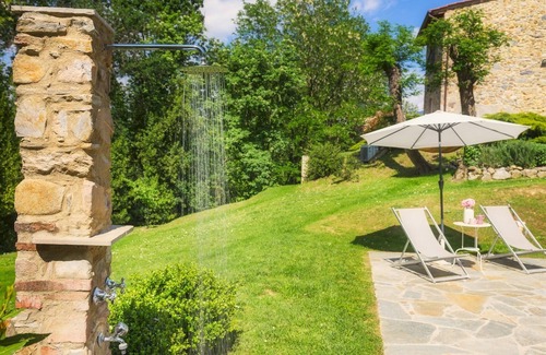 On a clearing in the green hills of Lucca stands Ai Due Cuori, set like a pearl in this area renowned throughout the world for its Camellia blooms, which only here find a mild climate. The house, born from recent, careful restoration, shows the classic stone finish, highlighting parts of the old 19th century structure, such as the old Carrara marble sink set on one side of the house to serve the BBQ corner, the artistic wrought-iron railings, the wooden-beamed ceiling with handmade terracotta tiles, combined with plain furniture that will give you a relaxing holiday. Entering the house you come to an open-plan area with dining area, kitchen and living area with sofa and TV corner. On the first floor are two double bedrooms and a modern bathroom with shower. For your outside comfort are two living areas, one with gazebo and table near the kitchen where you can have unforgettable meals immersed in unique peace and, going down towards the pool, one with comfortable armchairs where you can enjoy a good glass of red Tuscan wine. Guests staying in this oasis of peace can choose to relax in the garden beside the pool, or, given the proximity to the motorway, can quickly reach the famous tourist cities of Tuscany such as Lucca, Florence, Pisa, Siena and the nearby Tyrrhenian coast with Viareggio, fashionable Forte dei Marmi and the renowned Cinque Terre. The property is only a few kilometres from Lucca, a city of unique charm, surrounded by still intact city walls on top of which you can spend unforgettable days walking in the footsteps of the great maestro Giacomo Puccini who lived and wrote some of the most beautiful operas in this city. Opera lovers should not miss the Puccini Festival held every year during July and August in the unique setting of Torre del Lago (www.puccinifestival.it) while contemporary music lovers will enjoy the Lucca Summer Festival (www.summer-festival.com)