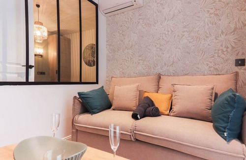 Stylish and comfortable accommodation in Nice Discover the perfect blend of style and convenience at Anngleterre 2, a 33 m² ground-floor apartment located in the heart of Nice. This thoughtfully designed space offers all the comforts of home, making it an excellent choice for travelers seeking a relaxing retreat. The apartment features a cozy European double bed (140x200 cm) in the bedroom and a convertible sofa in the living room for additional guests. The fully equipped kitchen comes with everything you need, including a Nespresso coffee machine, kettle, and oven, allowing you to prepare delicious meals at your leisure. The living room's glass doors open directly onto the interior courtyard, filling the space with natural light and providing a peaceful atmosphere.