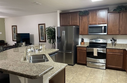 Located in the quiet and private vacation home community of Calabria Westside, this 3032 sq. ft. House was built in Sept. 2011 and first rented in January 2012. A 6 bedroom vacation home features 4 main bedrooms all with 40” LCD TV’s. Two are king rooms with ensuites and the other are king and queen rooms. There are also two kid’s rooms which both have 24” LCD TV’s with DVD players. The first Kid room is Mickey and Friends themed with 2 twin beds and the other is a Marvel themed with a twin bed and a double bunk bed. All rooms have a ceiling fan. Outside is a covered lanai with ceiling fan and south facing pool with spa which backs onto a beautiful conservation area. Inside there is an inviting living area with a 60” LCD Smart HDTV to watch your favourite streaming services such as Netflix and with and Blu-ray player which is next to a fully equipped eat-in kitchen with an Air Fryer & Keurig 2.0 coffee machine and a formal dining area. The garage also has a games room with a pool table, air hockey, and freestanding video game machine with sixty classic games! Upstairs, enjoy more family fun in the loft which includes a 46” LCD HDTV, Blu-ray player and Xbox 360 and also there is Free hi-speed Wi-Fi internet access. Located within 6 miles of Walt Disney World Gates, 20 miles from Universal Studios, 15 miles from Sea World and close to Lots of Great Restaurants, Shopping and grocery stores. Tampa Bay is 60 miles away with a Hard Rock Casino and Busch gardens, NHL Hockey, MLB Baseball and NFL Football. As well as many beaches along the Gulf of Mexico. Towards the Atlantic Ocean is Kennedy Space Center as well as Cocao Beach and is 70 miles.