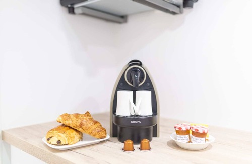 Decorated with a modern yet cosy style by our local interior designers, guests will love the small artistic touches that make this apartment feel like a home away from home. Clean lines, colorful walls, plush furniture and large windows give the cosy space plenty of natural light. A fully equipped kitchenette is perfect for making small meals and the cosy outdoor terrace is a great place to unwind with a cold drink after a long day soaking up the sun. Premium amenities include free WiFi, cable TV, hotel beds and linens, luxury toiletries, and a Nespresso machine.