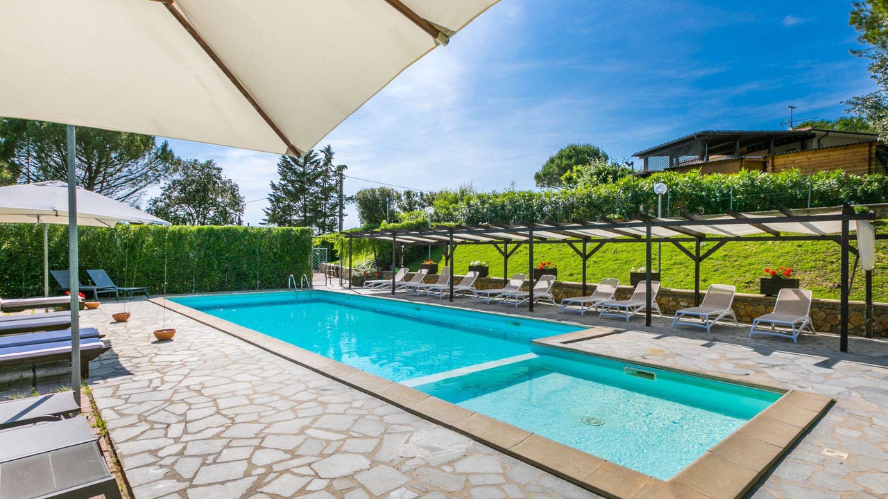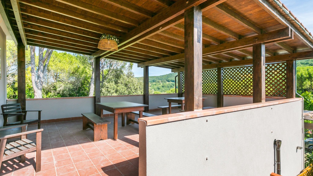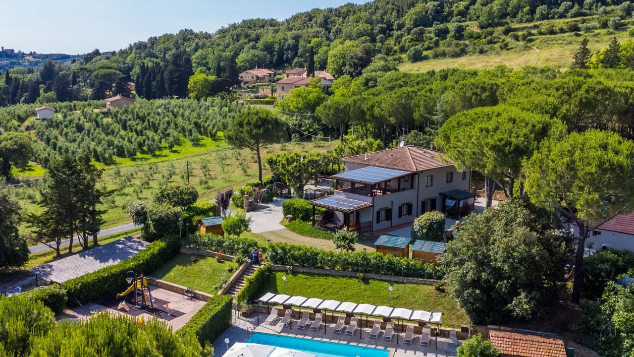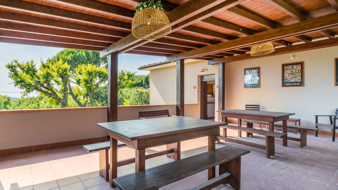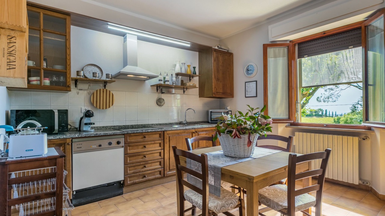 Agriturismo "Casaltoscano", 2 storeys, renovated in 2024, surrounded by trees, fields and vineyards. 5 apartments in the property. 4.5 km from the centre of Casale Marittimo, 4 km from the centre of Guardistallo, 13 km from the centre of Marina di Bibbona, in a quiet position on top of a hill, 13 km from the sea, 13 km from the beach. For shared use: property 1 ha, natural garden, meadow, swimming pool (14 x 5 m, depth 60 - 150 cm, seasonal availability: 01.May. - 15.Oct.). Children's pool, table tennis, basketball, children's playground. In the complex: reception, air conditioning, washing machine, tumble dryer (for shared use, extra). Parking on the premises. Shop 4 km, grocery 4 km, supermarket 12 km, shopping centre 12 km, bakery 4 km, bus stop 3 km, thermal baths "Calidario" 37 km. Nearby attractions: Bolgheri 12 km, Pisa 65 km, Lucca 90 km, Firenze 125 km. Please note: car recommended. Baby equipment on request (extra). The owner lives on the same property.