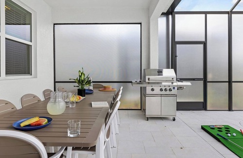 When the weather is right (basically always), pop open the patio door to your private outdoor oasis, featuring a crystal blue pool, comfy loungers, a patio table and chairs, and a grill. Shift the vibe from chilled to fired up with some friendly competition at the ping pong table, putting green, and poolside basketball hoop!