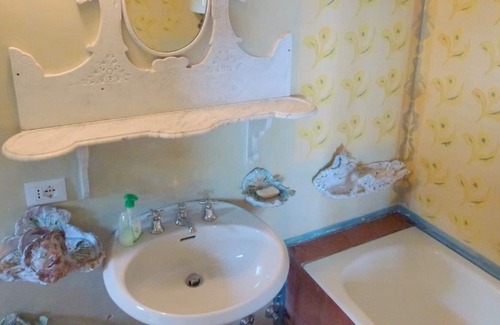 The villa is in Strettoia (Pietrasanta). It is a unique, old, rustic house on a hillside with a wonderful view of the Versilia coast. The owner, an artists, has turned the house into a piece of art. Ceilings, floors and walls as well as furniture are painted in colourful patterns. Stones, fireplace and water basins are artfully arranged. This house is surrounded by a terraced garden with garden furniture, pergola. A small pool (5x3.5m) is great for cooling off on hot summer days. There is a quaint, rustic kitchen with fireplace, utility room, dishwasher and washing machine and a large separate dining room w/ fireplace, bathroom/WC on the GF. 1. 1st F: 2 bedrooms (each with a double bed and bathroom with shower), 1 large living room (can be locked) w/ 2 beds, fireplace and balcony with panoramic view. 2nd floor: 1 bedroom w/ double bed and bathroom/WC, 1 living room w/ bordering, romantic veranda with panoramic view. Indoor and outdoor stairs for the upper floors.