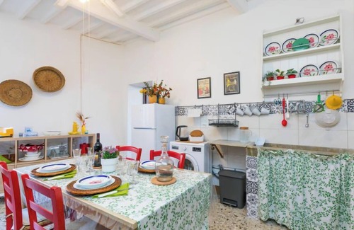 A beautiful historic building in the old part of the village. Absolutely central but still quiet. House, 2 storeys, semi-detached. In the resort Riparbella, in a central position, 12 km from the sea. Linen change weekly. Towel change weekly. Public parking 20 m. Shop 100 m, grocery, supermarket 9 km, restaurant 100 m, café 50 m, bus stop 50 m, railway station "Cecina" 10 km, sandy beach "Marina di Cecina" 12 km, outdoor swimming pool 2 km, thermal baths "Calidario" 40 km. Nearby attractions: Volterra 30 km, Pisa 60 km, Lucca 90 km, Firenze 120 km. Please note: Loading and unloading of baggage is possible at the holiday house. Owner lives in separate semi-detached house. Additional parking spaces approx. 120 m away.