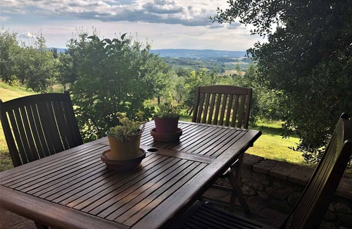 The holiday apartment is furnished in a modern style. The property is located on a farm. Also due to the view over the mountains from the property and its hillside location the domicile is popular. Available for your exclusive use: barbecue facilities and terrace.LocationMontespertoli. The holiday apartement is located on a farm. Parking is available on the property. SpecialTV reception takes place via satellite. PoolAll pools are available for shared use. Outdoor pool (usable from mid May to end of September, 4,60 m x 7,25 m, depth 1,20 m). Dogsallowed, EUR 40.00/pet per stay. DistancesShopping 2 km, restaurant 2 km, town center 2 km. Florence 30km, Pisa 70km, Siena 50km In summer: Bathing possibility 70 km in Livorno (beach 70 km in Livorno). DivisionHoliday apartment, 1 floor, 3 rooms (including 1 bedroom), 100 sqm, in total 4 beds, plus 1 baby cot. RoomThe entrance to your holiday apartment is located on the ground floor and is wheelchair accessible. Living room with 1 additional bed on couch/sofa, TV, access to the terrace (garden furniture) and Extra bed more suitable for children. Bedroom with 1 double bed. Eat-in kitchen with 1 single bed. American kitchen in the kitchen-diner with gas stove, oven, fridge (icebox) and washing machine. Bathroom. Terms of lease and pricesIncluded in the priceparking place, electricity, water, local tax (under 14 years), bed linen, hand towels, pool. Side costs-Costs on the spot:/Obligatory:heating 5,50 € per cubic meter based on usage. final cleaning 60 € per object per stay. local tax by local tariff (if charged).On request:baby cot 35 € per bed per week.Deposit:EUR 150,-/object