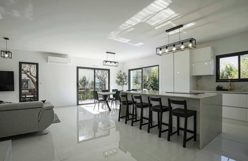 The decor is minimalist yet warm, with quality finishes and everything you need for a relaxed stay. Outdoors, enjoy a barbecue, dining area, loungers, and the calm of a residential neighborhood.