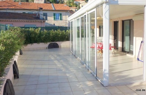 Modern 2 bedroom apartment with superb roof terrace, walking to beach ! is located in Mandelieu-la-Napoule Beach. Modern 2 bedroom apartment with superb roof terrace, walking to beach ! provides accommodation, featuring View, Wheelchair Accessible, Balcony/Terrace, among other amenities. This Apartment features View, Wheelchair Accessible, Balcony/Terrace, to make your stay a comfortable one.