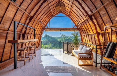 The open living space on the second floor offers a comfortable seating area to relax and an unforgettable sunrise -and jungle view.