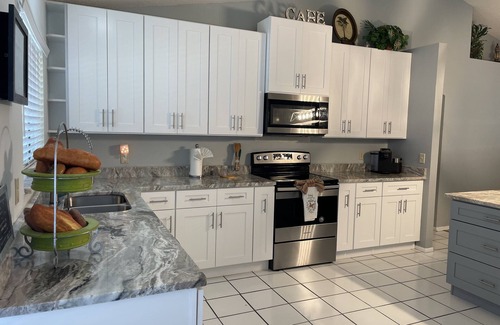 This Central Florida area great vacation Village 3 bedroom and 2 bathroom is just 5 minutes from Disney Them Parks and short 15 min drive to other attractions with easy access to 192,I 4 and 429 there is abundant shopping ,malls,restaurants,golf...this house is fully furnished with a heated private full fence around the pool (for small feet)with the comforts of home(near new water park on Margaritas Resort. ) free parking.