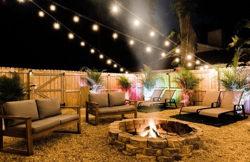 Step outside and you’ll find your own private paradise: a sparkling pool, hot tub, and sauna ready to melt the stress away. The outdoor shower is great for rinsing off after a swim, and the firepit is perfect for evening stories and s’mores. With soft outdoor lighting, the backyard turns magical after sunset — ideal for winding down as a family.