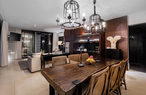 Tucked deep amongst five-star resorts, the villa suite is an exquisite pool villa living up to the location’s reputation, offering the finest tropical holiday experience of its own. With an irresistible outdoor pool as its centrepiece, this relaxed style suite sleeps 6 in plush comfort. The expansive layout of two separate structures on an L-shape consists of a large living and dining room on one side, with three lavish bedrooms make up the other side. The floor-to-ceiling glass walls ensure ample natural light, with access from all rooms on the ground floor opening out to the outdoor pool. The relaxed living spaces are all designed with modern sensibilities for maximum comfort, complemented by exquisite furnishings and refined art pieces. The popular Geger Beach, popular with surfers, is a mere five-minute walk away.