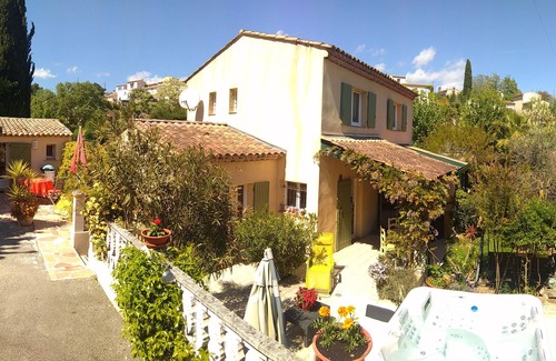 Outside, you will enjoy a beautiful garden planted with Mediterranean species, a spa, terraces all around the house with barbecue, swing, garden furniture, deck chairs, hammock, petangue pitch, ping pong table, hut and swings for children, mountain bikes available. The linen is provided. Upon arrival we will provide you with all the documentation and information necessary for you to spend the holiday of your dreams. The location is ideally located because while being absolutely quiet, we quickly joined the main roads (penetrating Grasse-Cannes 1.5 km, A8 motorway 10 minutes).