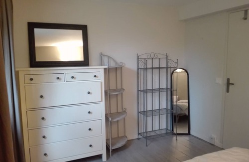 Pleasant independent apartment located on the ground floor of a villa close to the historic center of Mouans-Sartoux in a quiet and wooded environment. It is surrounded by a pleasant garden, not overlooked, with a swimming pool. It adjoins the garden of the Château de Mouans-Sartoux.