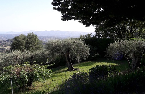 This villa is situated in Magagnosc, near Chateauneuf de Grasse, on a hill overlooking the traditional village of Magagnosc, with a great panoramic view of the Bay of Cannes and the hills of Chateauneuf stretching to the Esterel. It is nestled in a large Mediterranean garden, and benefits from all the major facilities available withing 1-2 km. You'll be close to numerous tourist sites, and some of the most beautiful villages of the Côte d'Azur: Gourdon, Opio, Cabris, Saint Paul de Vence, Tourrettes sur Loup, and more. You can also visit the famous coastal cities: Cannes, Antibes, Nice, and Monaco, enjoying their magnificent beaches and promenades. If you're interested in cultural sites, there are numerous possibilities: Grasse perfume museum, Renoir museum in Cagnes sur Mer, Matisse chapel in Vence, Maeght Foundation in Saint Paul de Vence, Picasso museum in Antibes, and more. If you prefer the peace and quiet of the mountain, there are numerous hiking trails that will allow you to discover the backcountry at your own rhythm. Finally, for a perfect evening, you can enjoy a quality concert on the small, peaceful church plaza in Opio, or discover gourmet delights in the Valbonne plaza. The house is situated in the heights with a large terraced garden with traditional Mediterraean vegetation: century-old olive trees, agaves, pink laurels, cypresses, and more. The garden is very large (5,000 m2), affording it absolute calm. Wide terraces allow you to rest or eat in the sun or in the shade of a large linden tree near the house or at the side of the pool. The pool is located on a terrace somewhat below the house. The property is entirely private, with access by a communal road below the house with an electric gate. The house is a traditional farmhouse made from local stone. It offers large spaces and has the comfort necessary for 6 people. All of the rooms have been entirely renovated and combine old-time charm with comfort and modernity. They open onto the garden and afford a sumptuous view of the Bay of Cannes. The house has 3 bedrooms, 2 of which are very large (20 m2 and 18 m2), with each one having a large and well-lit en-suite bathroom with a shower and bathtub. The third bathroom is a little smaller (12 m2), and it is equipped with a shower and a toilet for total independence. The first bedroom opens onto a balcony overlooking the garden and pool, the second is on the first floor and opens onto a loggia with a magnificent view of the garden, the village of Magagnosc, and the surrounding hills. There is a large and comfortable living/dining room of about 35 m2 with a large opening onto the garden, allowing you to spend lovely moments together in the cool house or in the winter in front of the fireplace. The house also has an independent studio with a piano for music lovers. The kitchen is spacious, clear, well-equipped, and it also opens onto the garden and the terrace. All of the rooms have been entirely renovated and combine old-time charm with comfort and modernity. They open onto the garden and afford a sumptuous view of the Bay of Cannes and the surrounding hills. Everyone will have their own independence, with two large bathrooms with a bathtub, shower, and washbasin en-suite to the two larger bedrooms, and a shower and toilet en-suite to the third bedroom.