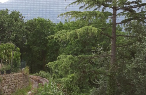 On the front there is a small fenced garden with a corner dedicated to aromatic plants and a pergola with grape vines in front of the entrance. The garden is equipped with a table and chairs for breakfast and armchairs for relaxing. From here you can enjoy a beautiful view of the mountains of Camaiore and Garfagnana.