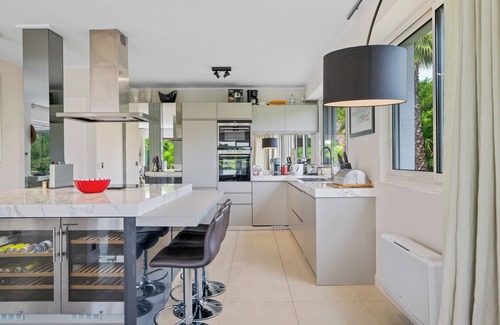 A South facing villa with the sea visible from the terrace, in a quiet and secure residential cul-de-sac with no neighbouring property overlooking. There is no passing traffic. Located in the glorious Croix des Gardes; 70 hectares of protected natural park, 5 minutes by car from the centre of Cannes and its glorious beaches .