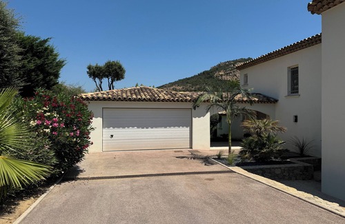 This luxurious villa, known as ‘Les Cycas’, is located in a private and secure estate on the heights of Grimaud and is ideal for 8 people. Bright and tastefully and modernly furnished, it offers every comfort to make the most of your stay. Swimming pool (10m x 5m), deckchairs, outdoor furniture, parasols, beautifully wooded garden (not fenced), pétanque court, table tennis, alarm, etc.