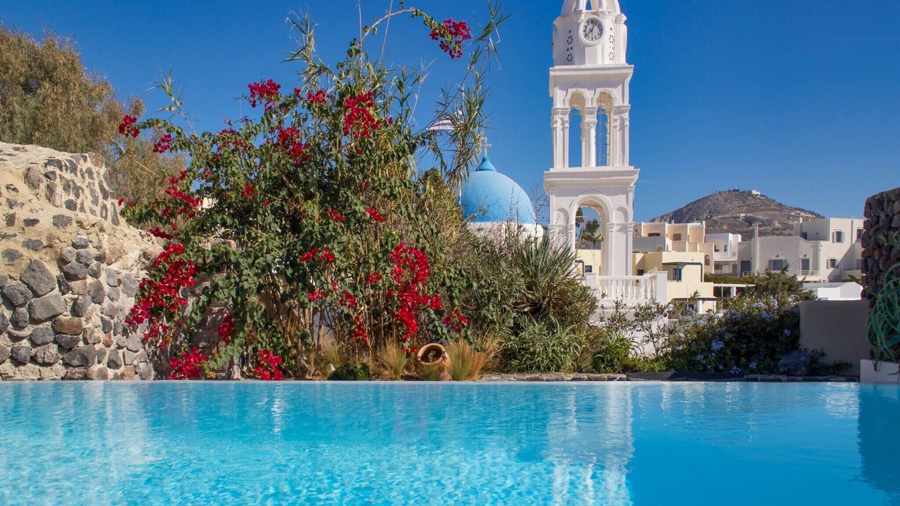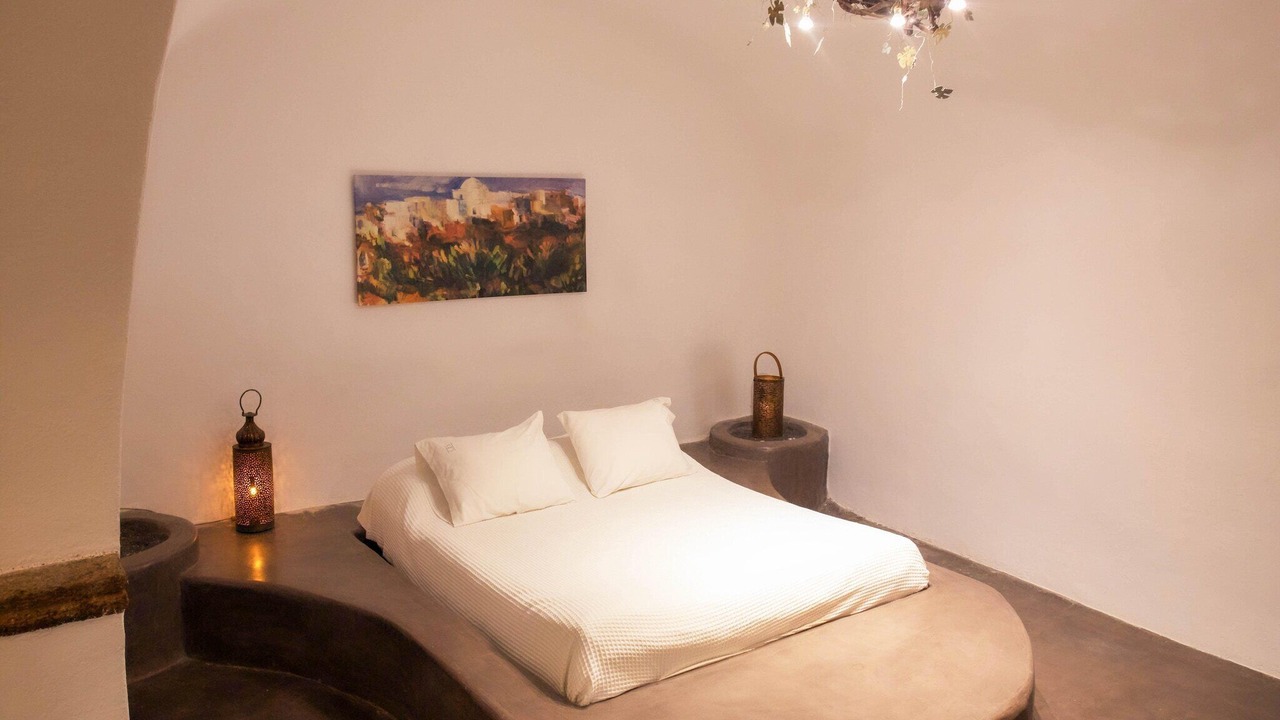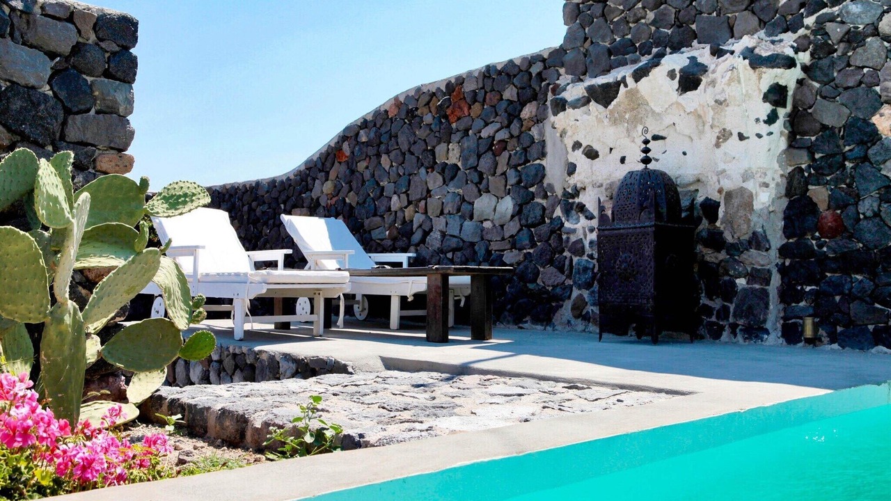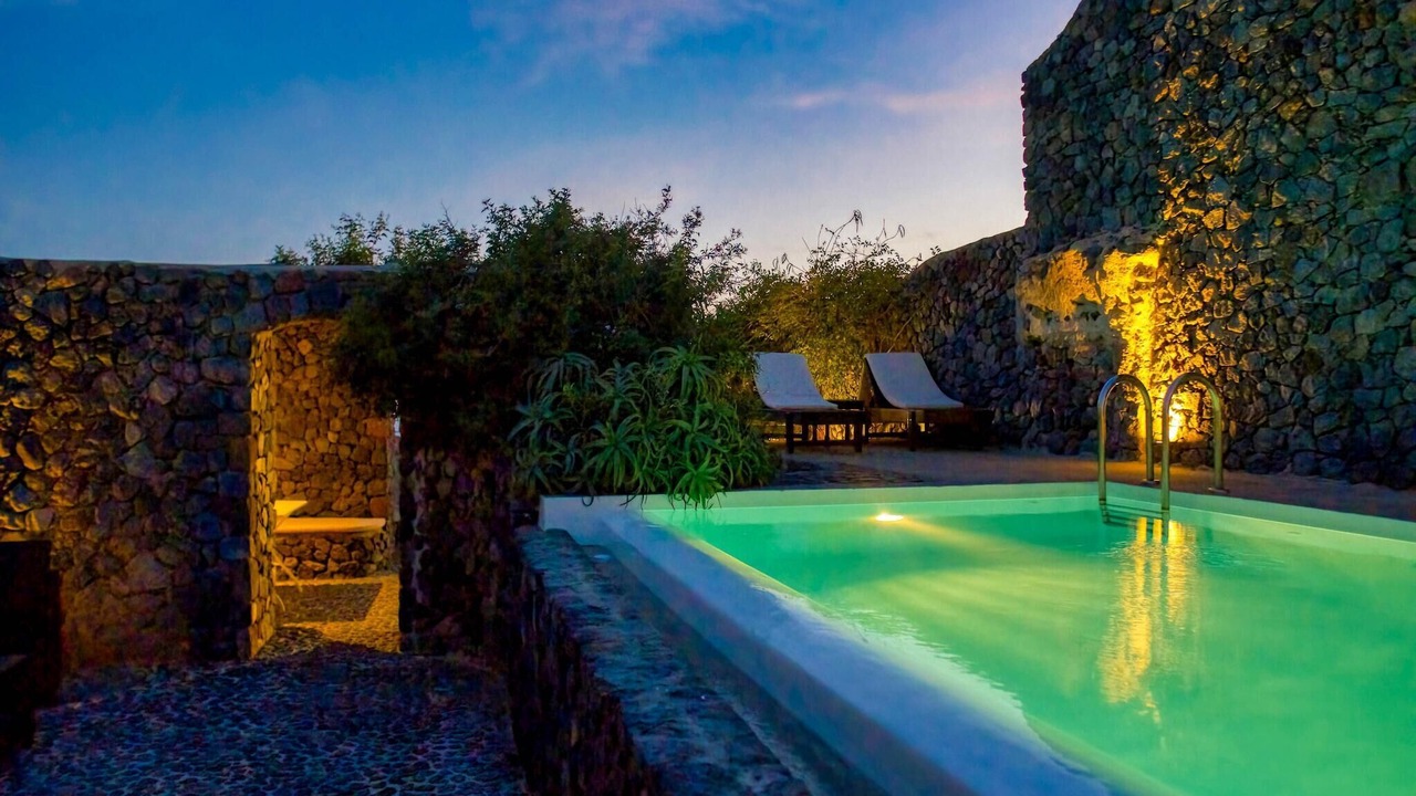 The villa also offers a private swimming pool (4 x 3 m), open from April to October. It is just 8 km from the sea, with restaurants only 100 meters away and general supplies within 200 meters. The lively center of Santorini and nightlife are 9 km away, with public transport nearby.