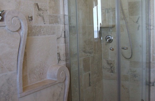 The 5 windows and the furnishings give light to the flat. The kitchenette is well equipped with gas cooker, fridge, dishwasher, toaster, German and Italian coffee makers. There is a washing machine in the bathroom, a satellite TV, a table for 6 and a sun shade on the balcony. There is a lift in the building. For the colder months there is a catalytic furnace. Vito and Rosanna offer free of charge a car parking space on the grounds of the house Villa Pineta which is lockable.