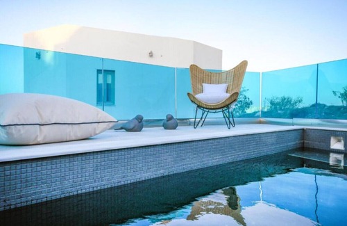 Yin Villa, is 150sqm, located in a quiet area, close to the nature in Monolithos; this brand new villa is giving, to those seeking for a peaceful and private accommodation in Santorini, the opportunity to relax by their private pool, avoiding the noise of the town. Modern architecture combined with traditional Cycladic lines and functional design, Yin villa seems to be ideal for a couple get-away or a family vacation.